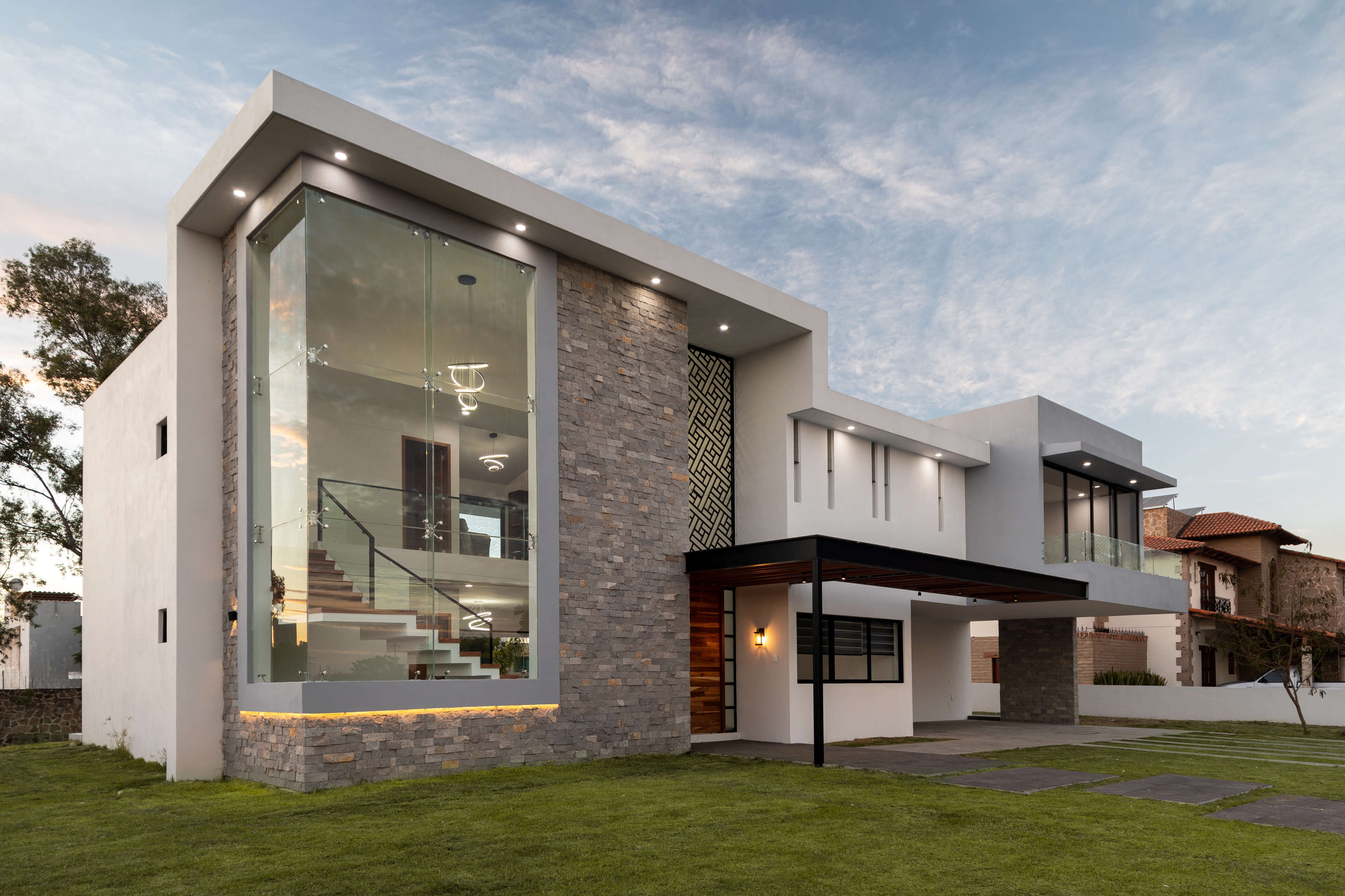 Esta casa fué diseñada para ofrecer tranquilidad y privacidad. Las areas sociales se integran de forma fluida con el jardín. Los grandes ventanales permiten que la luz natural inunde los espacios, conectando con la naturaleza circundante. Superficie de terreno 1,500m2. Superficie total de construcción: 450.79m2